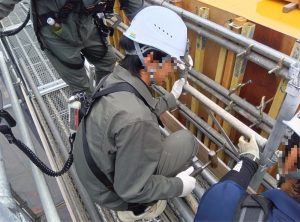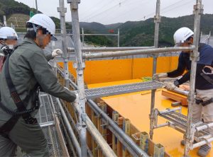 3日目は、既存足場より型枠への移動用ステップを設置していただきました。